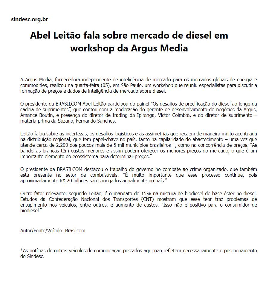 Abel Leitão fala sobre mercado de diesel em workshop da Argus Media