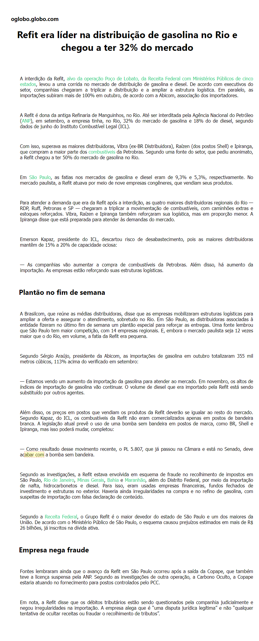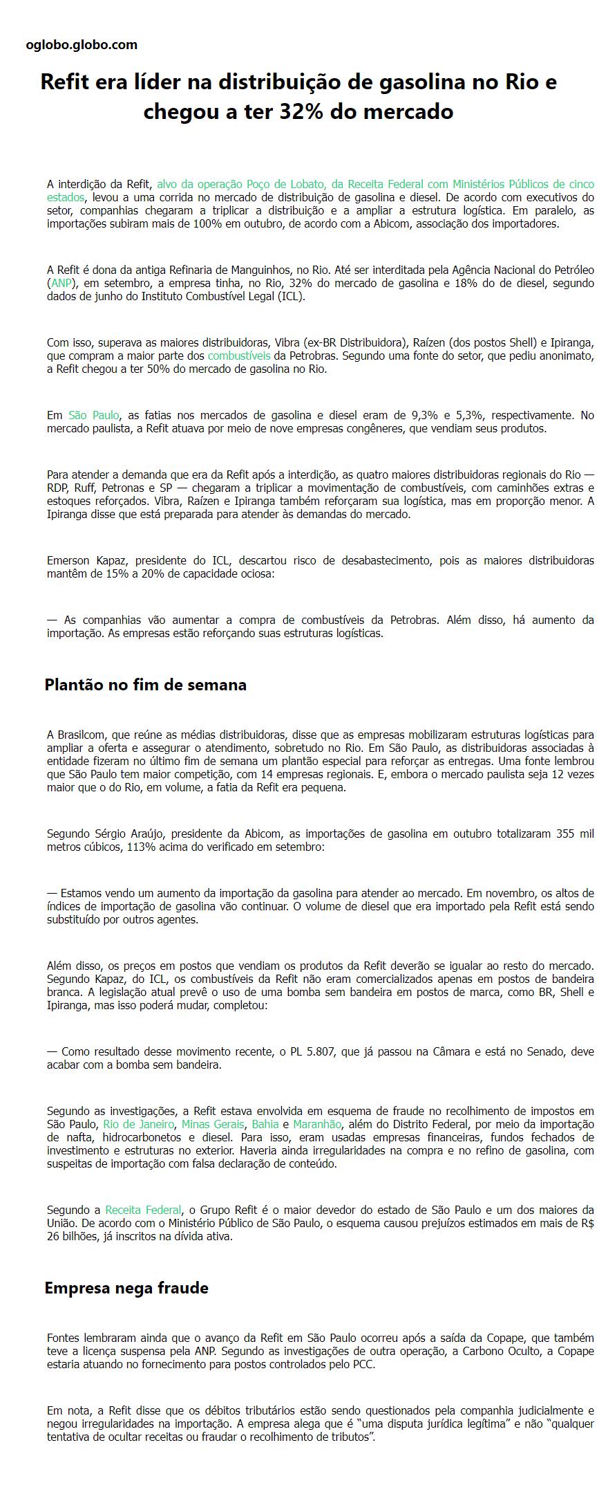 Refit era líder na distribuição de gasolina no Rio e chegou a ter 32% do mercado