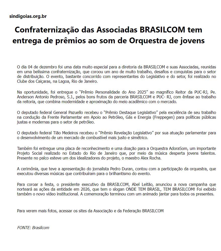 Confraternização das Associadas BRASILCOM tem entrega de prêmios ao som de Orquestra de jovens