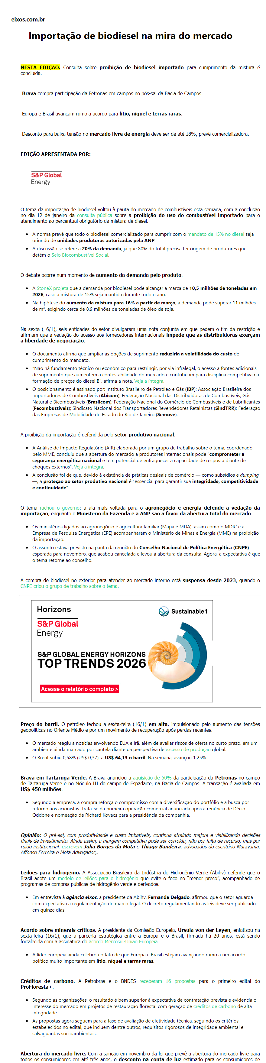 Importação de biodiesel na mira do mercado