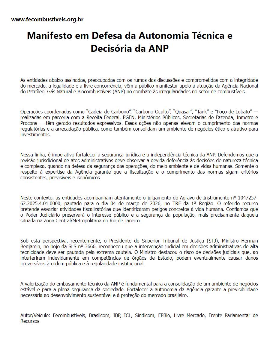 Manifesto em Defesa da Autonomia Técnica e Decisória da ANP