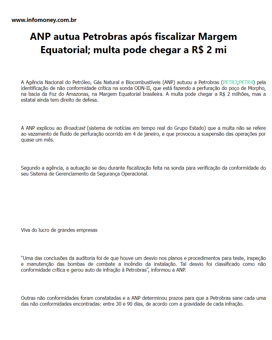 ANP autua Petrobras após fiscalizar Margem Equatorial; multa pode chegar a R$ 2 mi