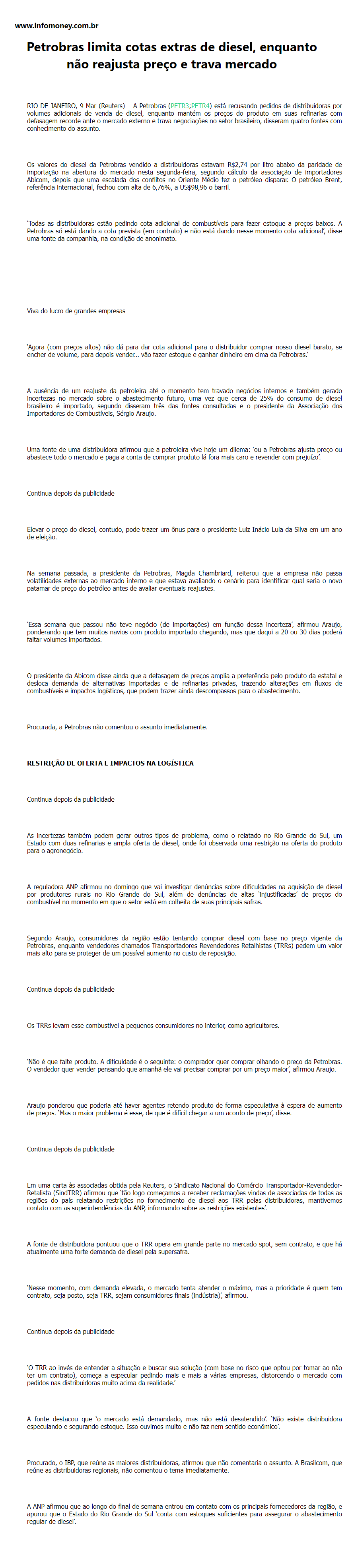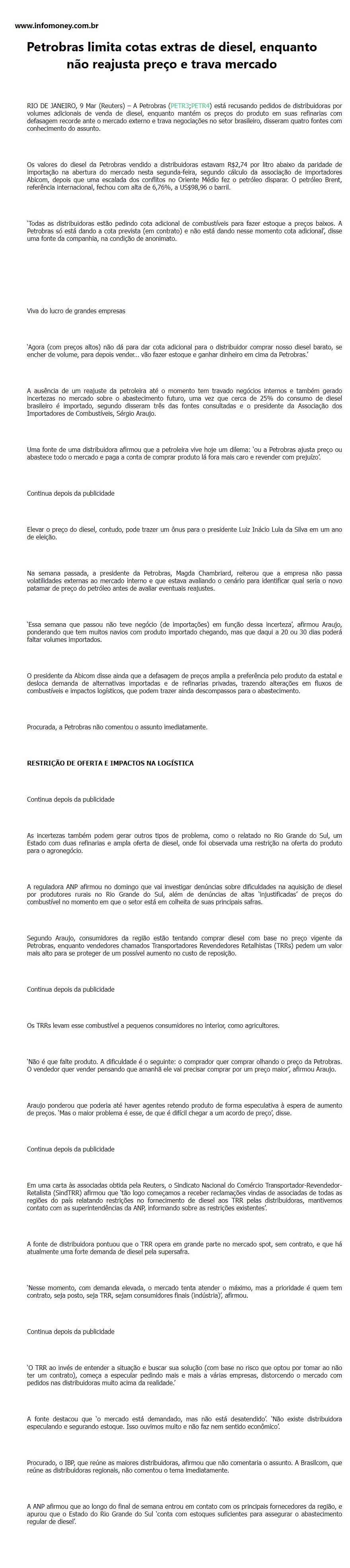 Petrobras limita cotas extras de diesel, enquanto não reajusta preço e trava mercado