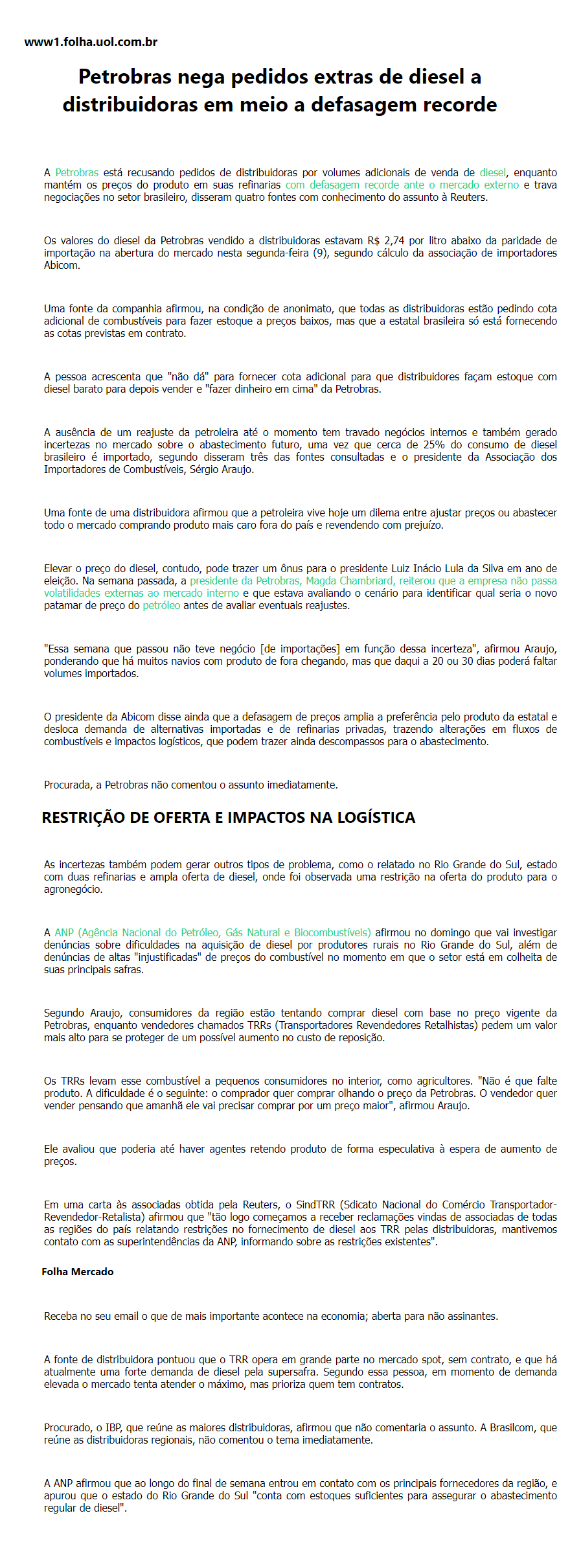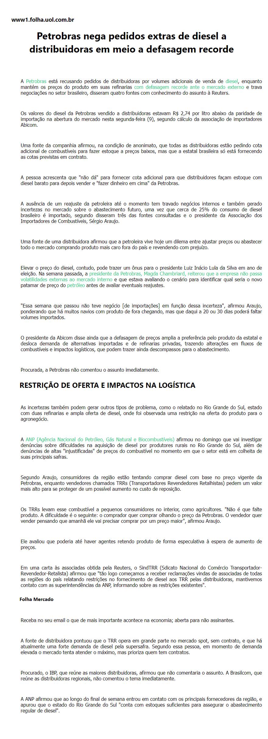 Petrobras nega pedidos extras de diesel a distribuidoras em meio a defasagem recorde