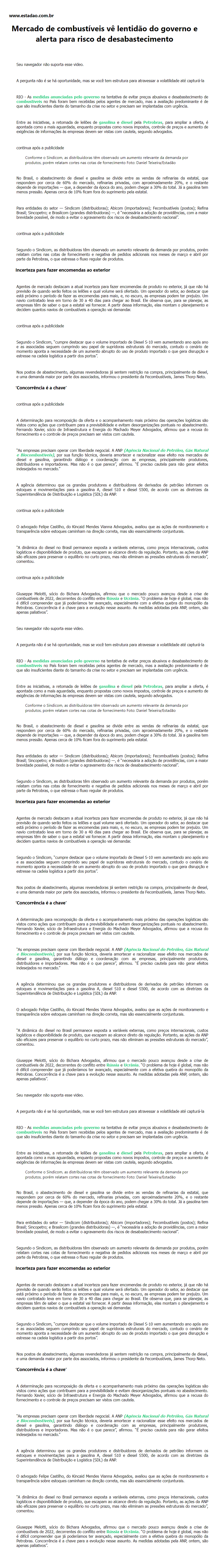 Mercado de combustíveis vê lentidão do governo e alerta para risco de desabastecimento