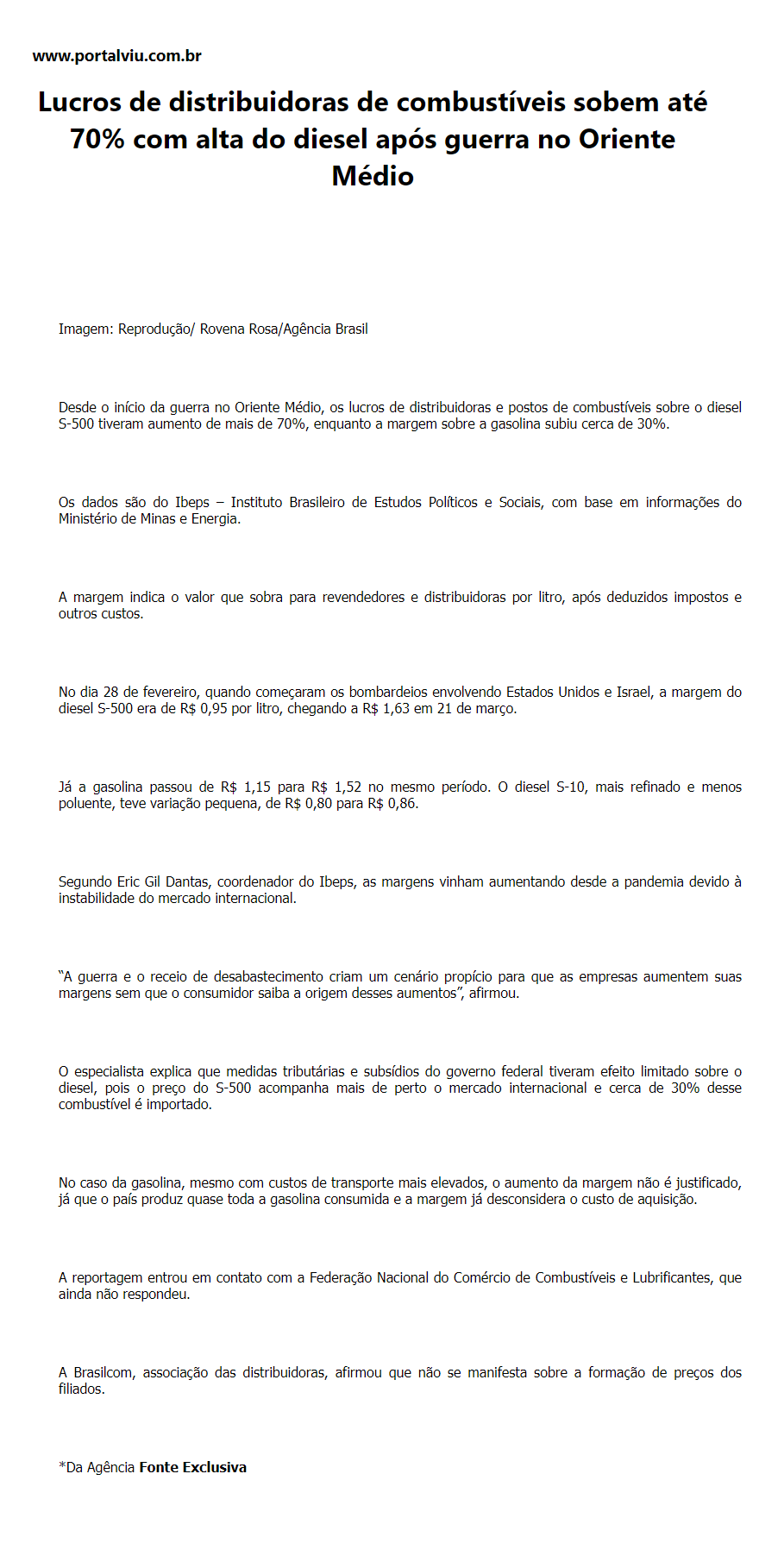 Lucros de distribuidoras de combustíveis sobem até 70% com alta do diesel após guerra no Oriente Médio