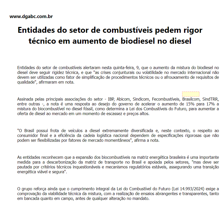 Entidades do setor de combustíveis pedem rigor técnico em aumento de biodiesel no diesel