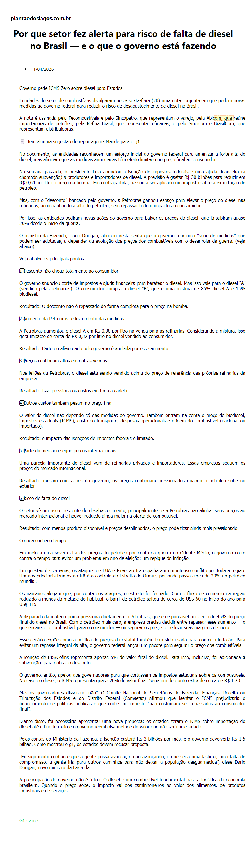 Por que setor fez alerta para risco de falta de diesel no Brasil e o que o governo está fazendo