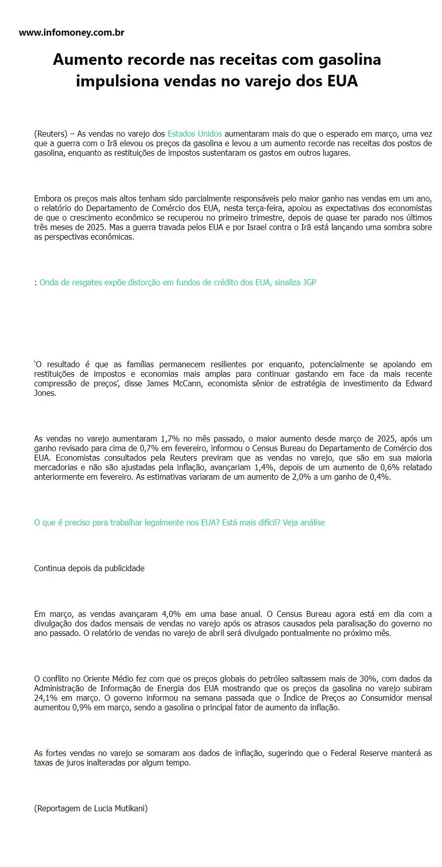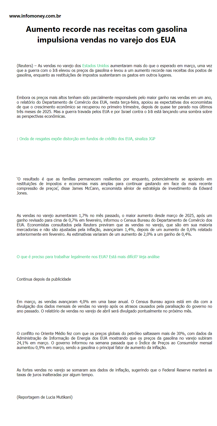 Aumento recorde nas receitas com gasolina impulsiona vendas no varejo dos EUA