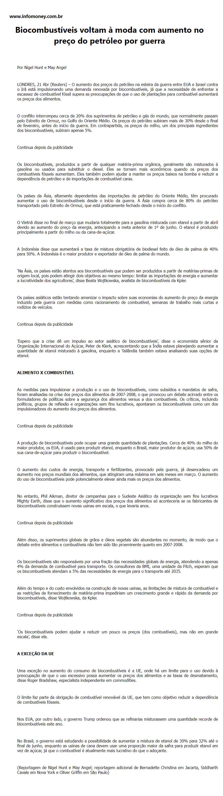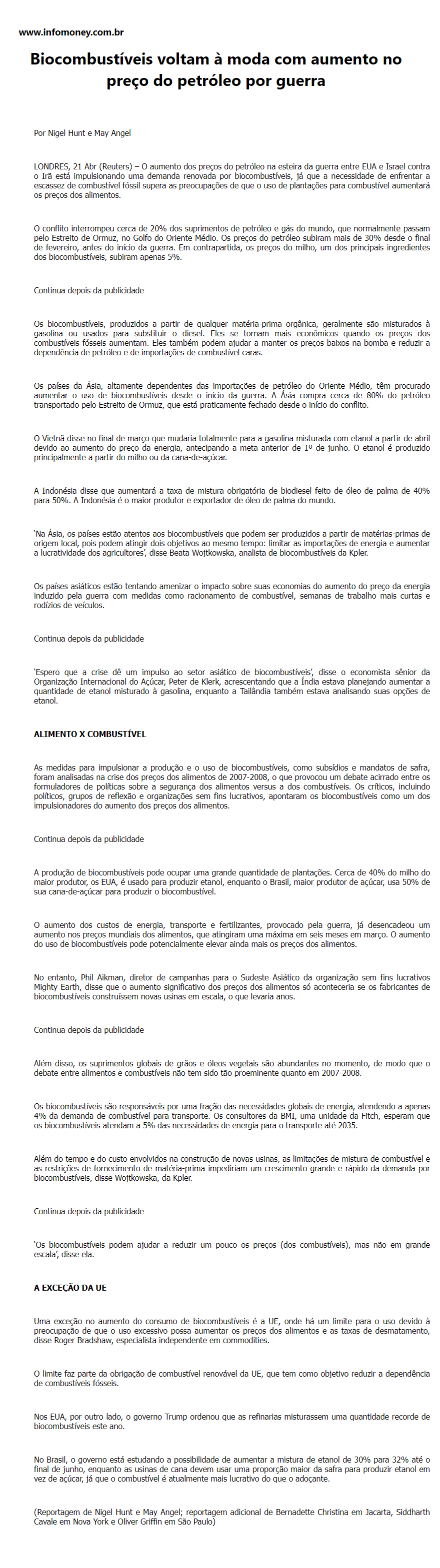 Biocombustíveis voltam à moda com aumento no preço do petróleo por guerra