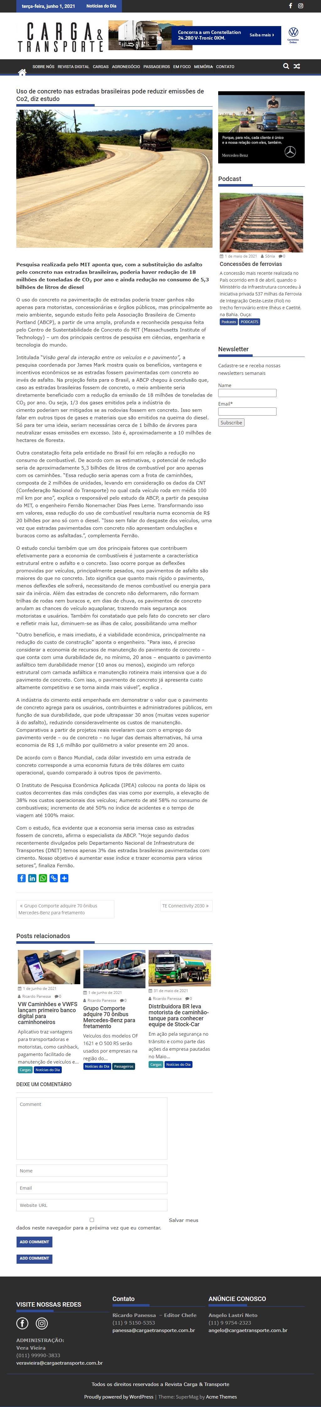 Uso de concreto nas estradas brasileiras pode reduzir emissões de Co2, diz estudo