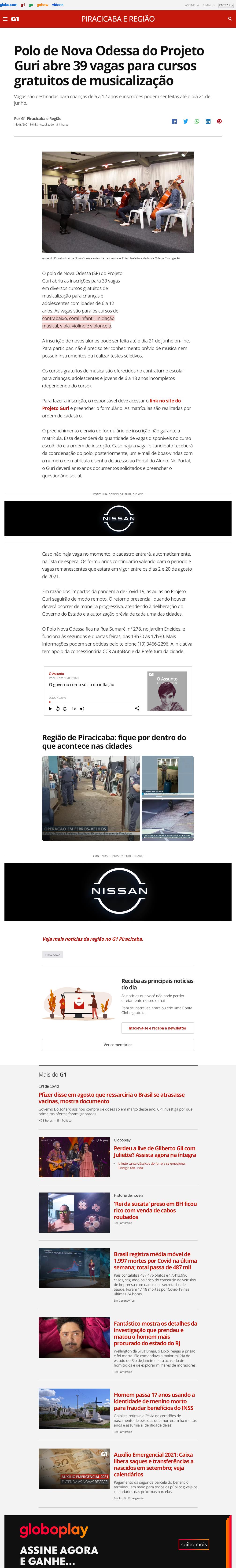 Polo de Nova Odessa do Projeto Guri abre 39 vagas para cursos gratuitos de musicalização