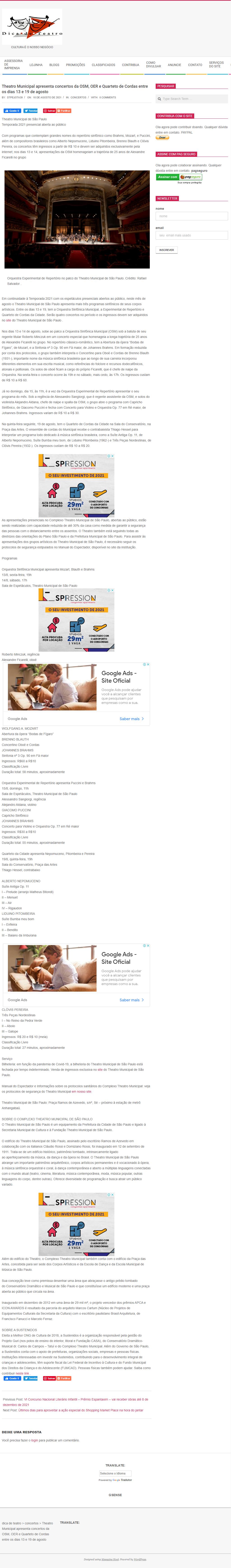 Theatro Municipal apresenta concertos da OSM, OER e Quarteto de Cordas entre os dias 13 e 19 de agosto