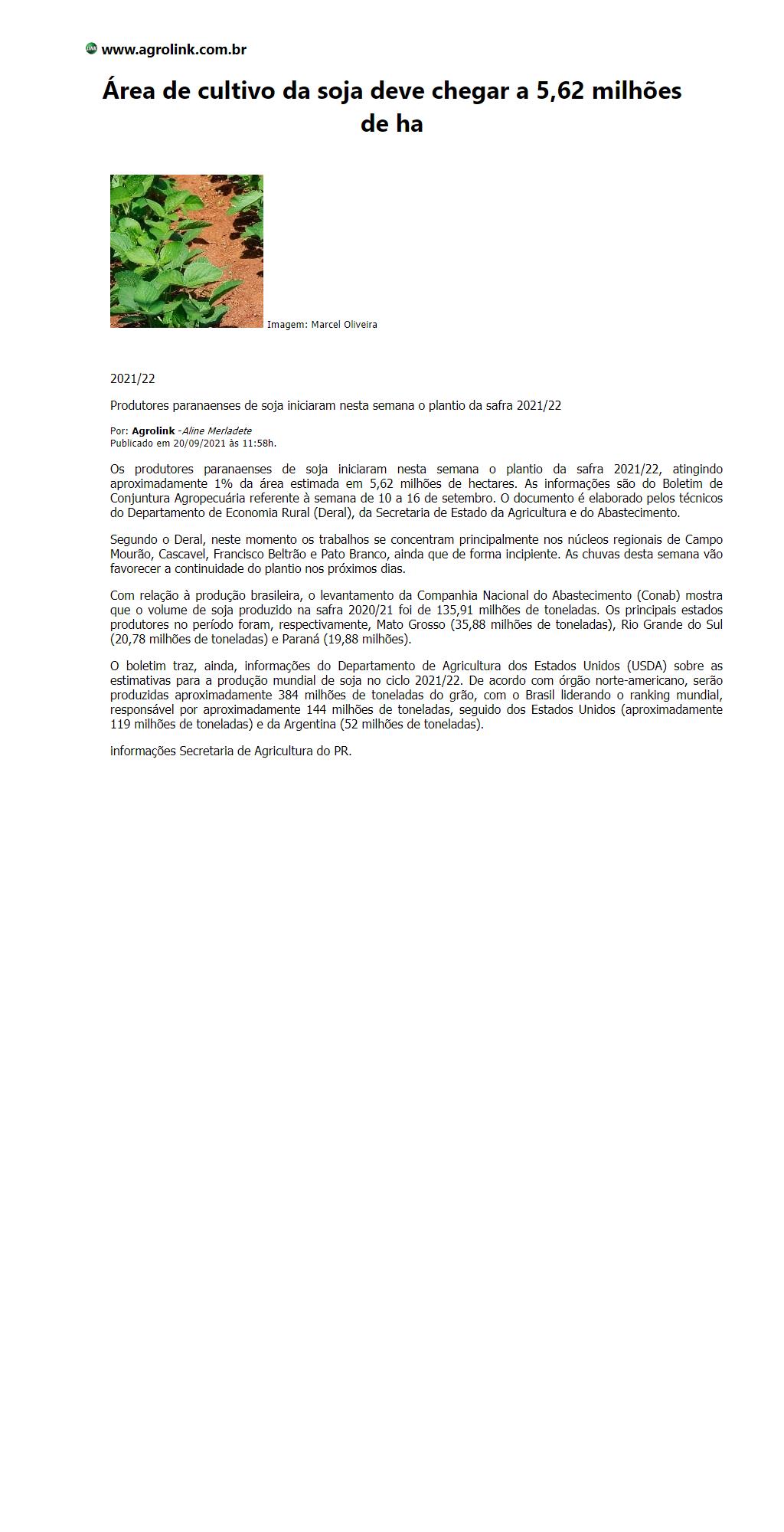 Área de cultivo da soja deve chegar a 5,62 milhões de ha