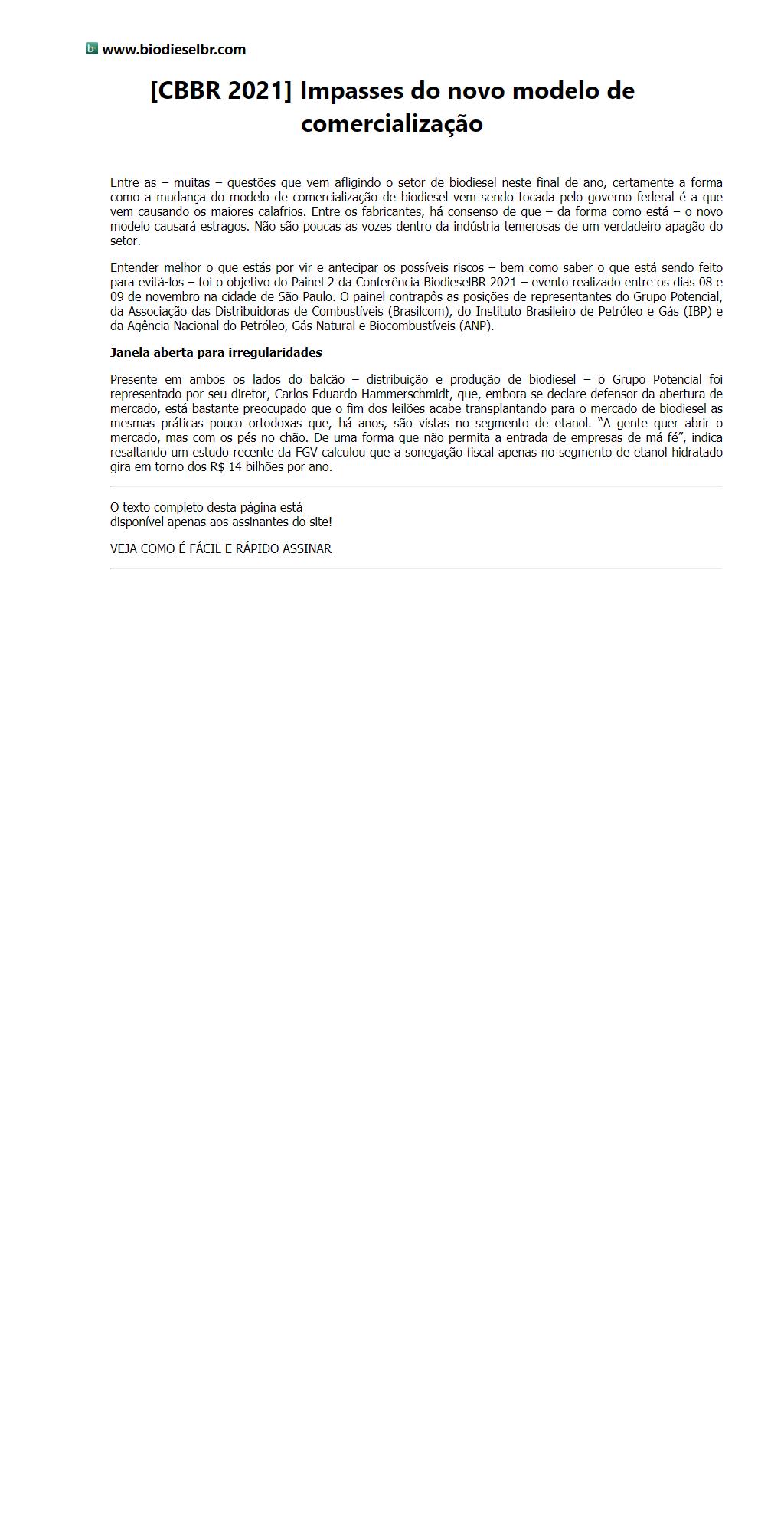[CBBR 2021] Impasses do novo modelo de comercialização