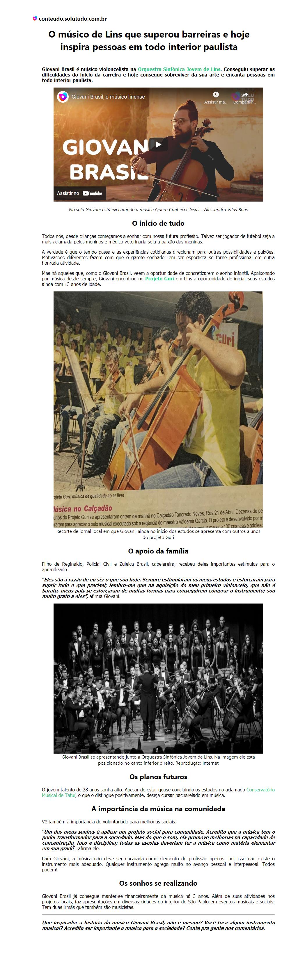 O músico de Lins que superou barreiras e hoje inspira pessoas em todo interior paulista