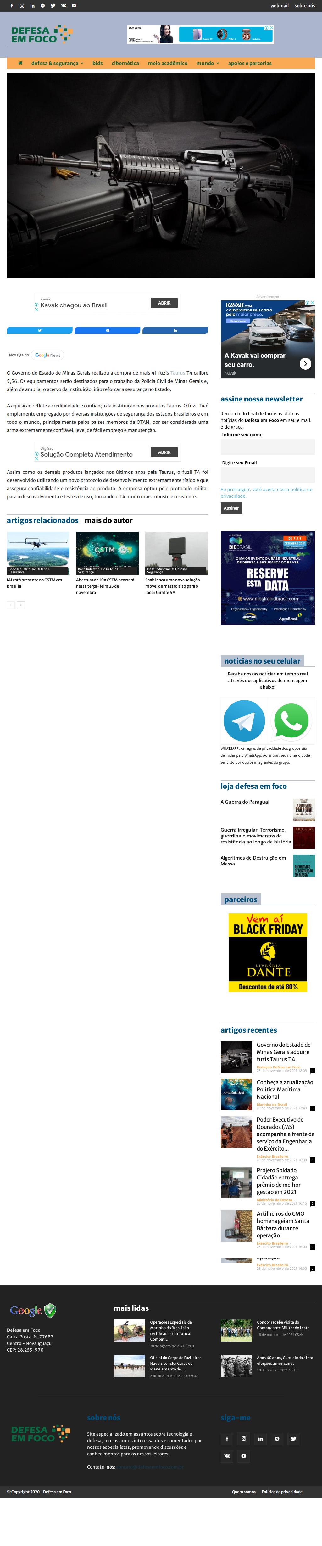 Governo do Estado de Minas Gerais adquire fuzis Taurus T4