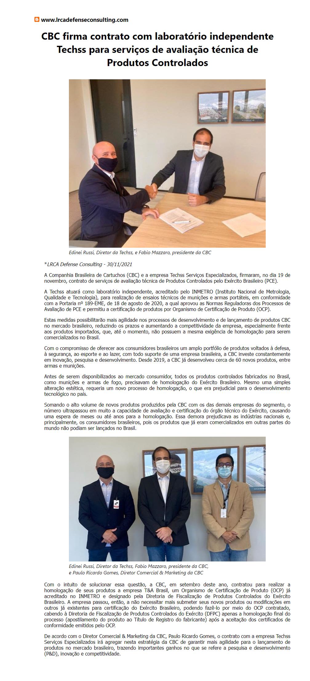 CBC firma contrato com laboratório independente Techss para serviços de avaliação técnica de Produtos Controlados