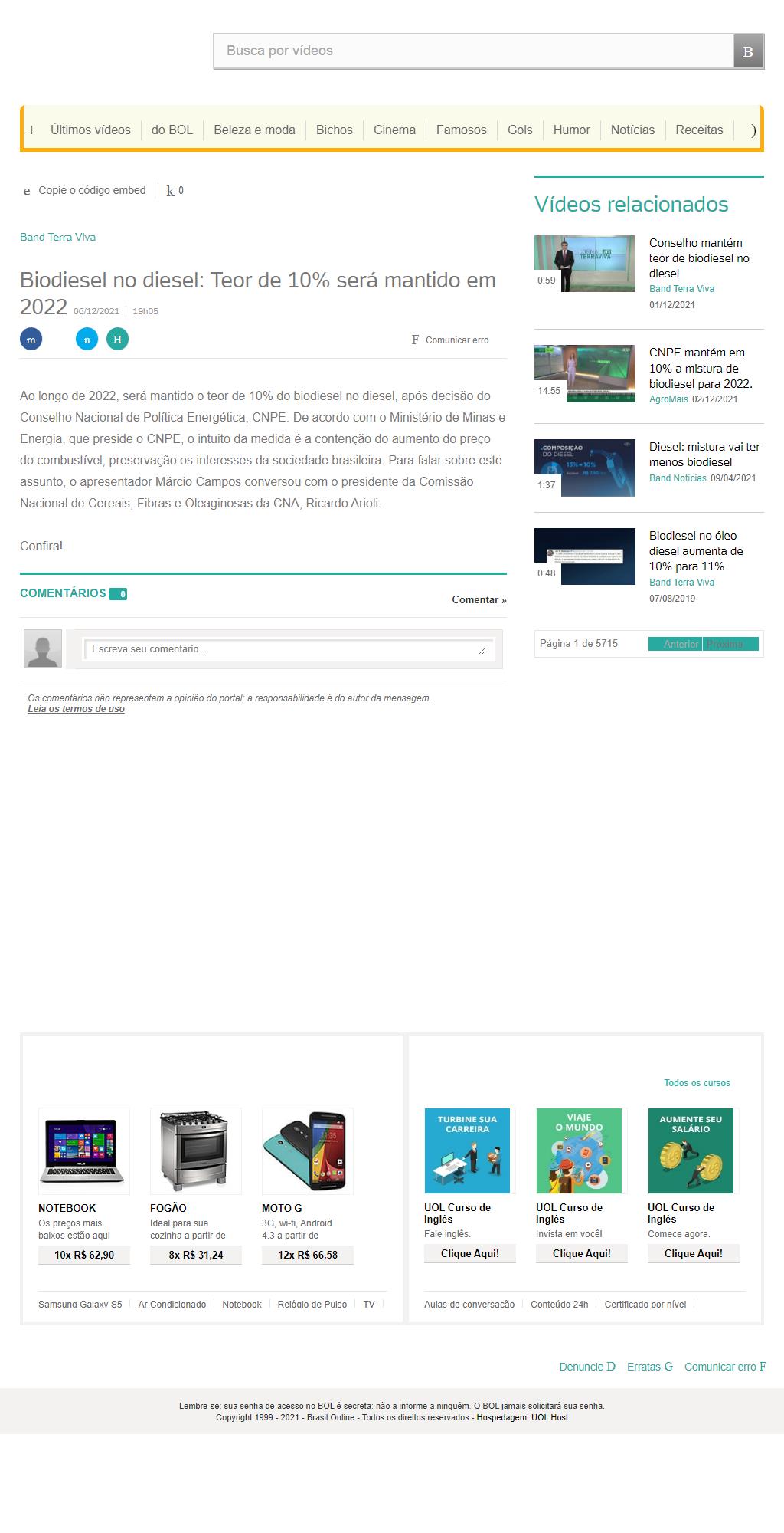 Biodiesel no diesel: Teor de 10% será mantido em 2022 06/12/2021 19h05