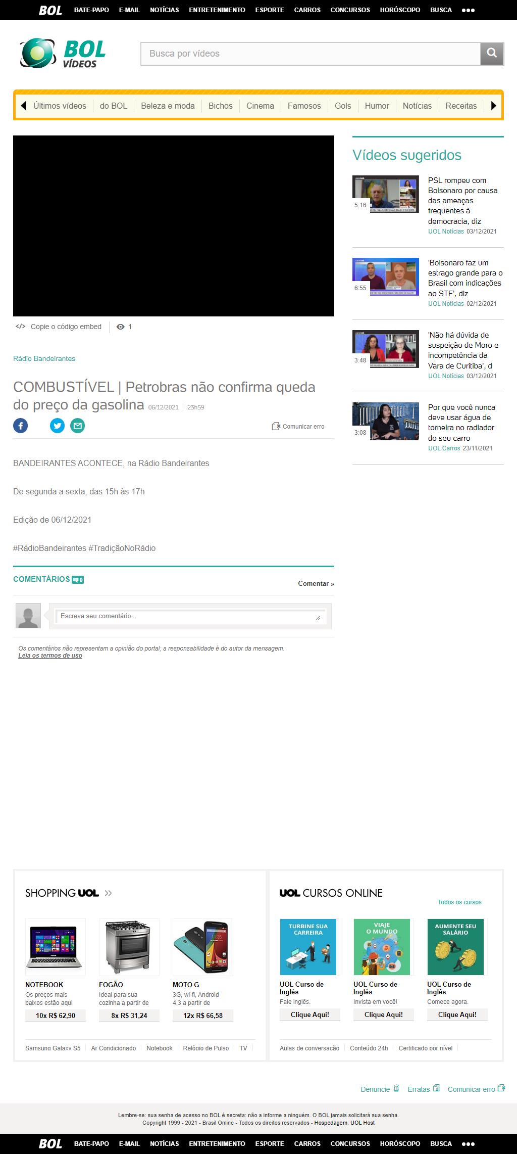 COMBUSTÍVEL | Petrobras não confirma queda do preço da gasolina 06/12/2021 23h59