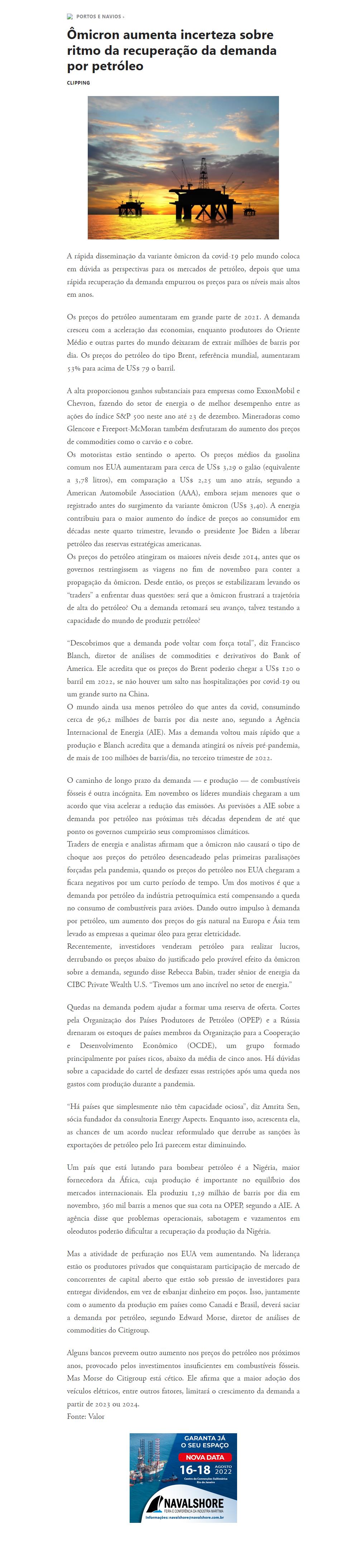 Ômicron aumenta incerteza sobre ritmo da recuperação da demanda por petróleo