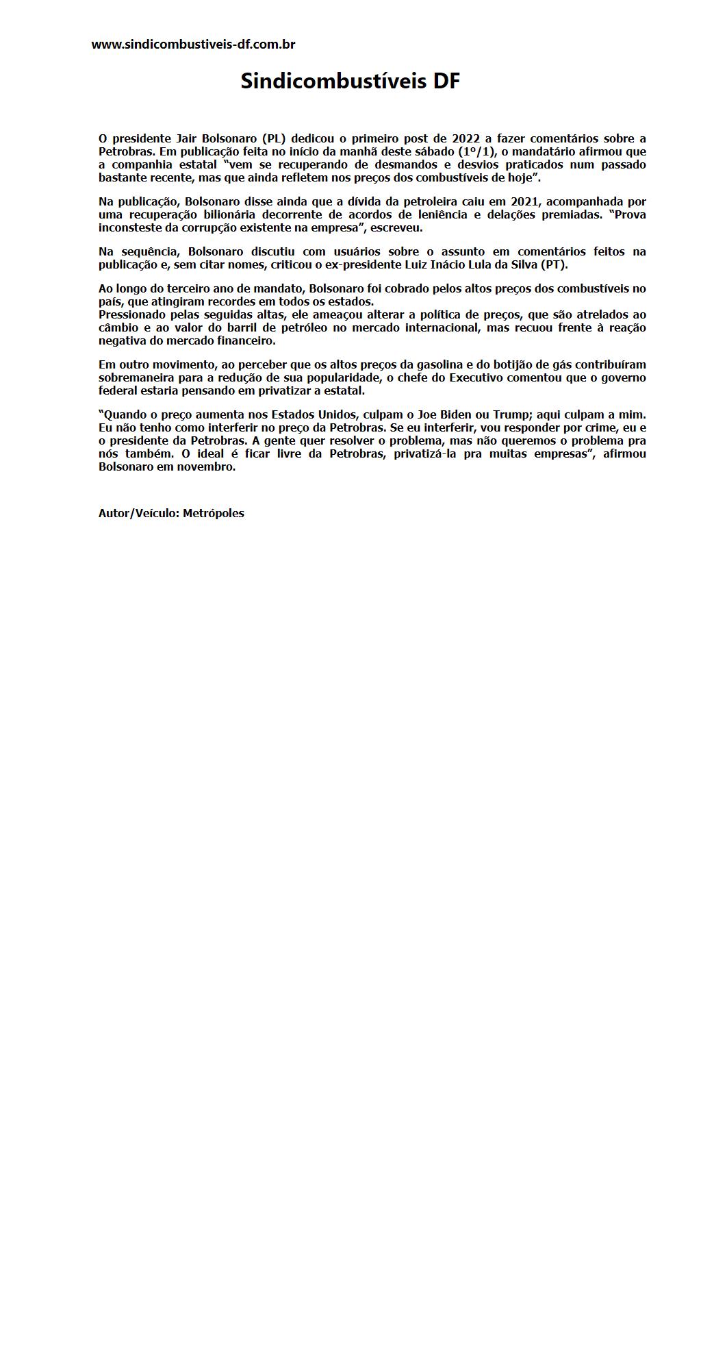 Em post, Bolsonaro culpa desvios na Petrobras por preço do combustível