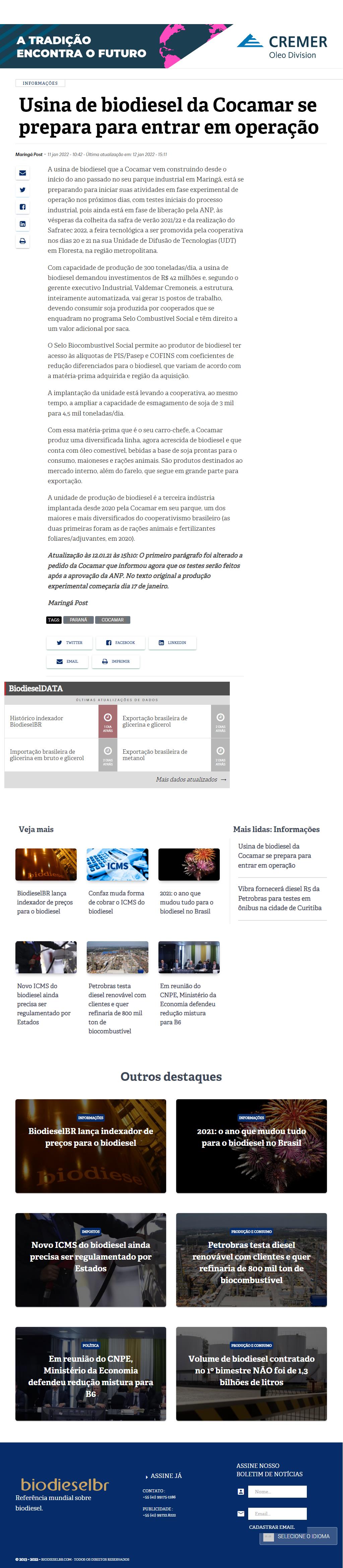 Usina de biodiesel da Cocamar se prepara para entrar em operação