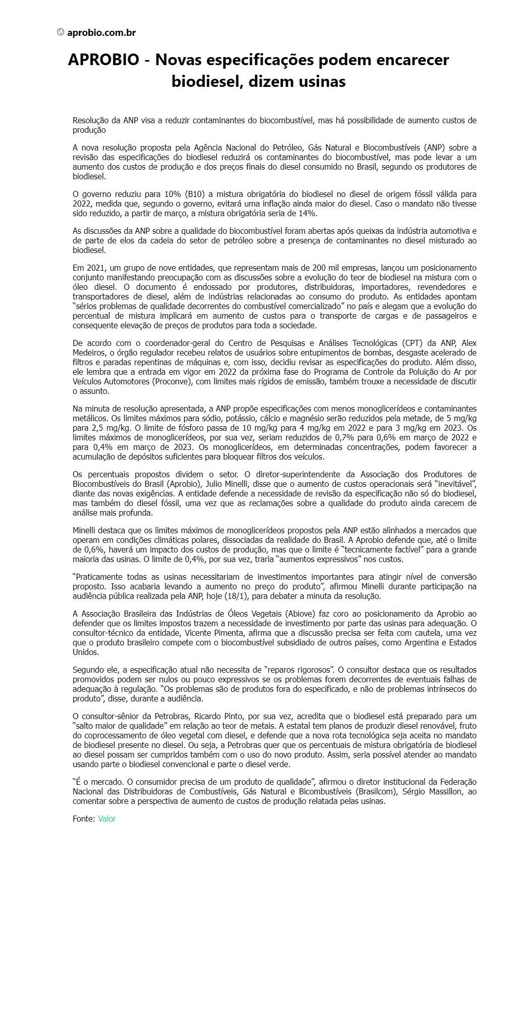 Novas especificações podem encarecer biodiesel, dizem usinas