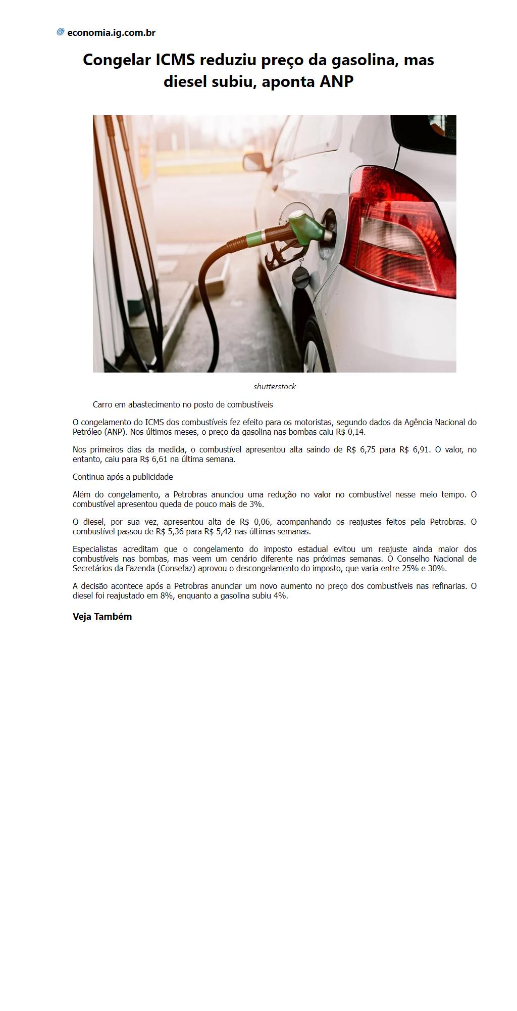Congelar ICMS reduziu preço da gasolina, mas diesel subiu, aponta ANP