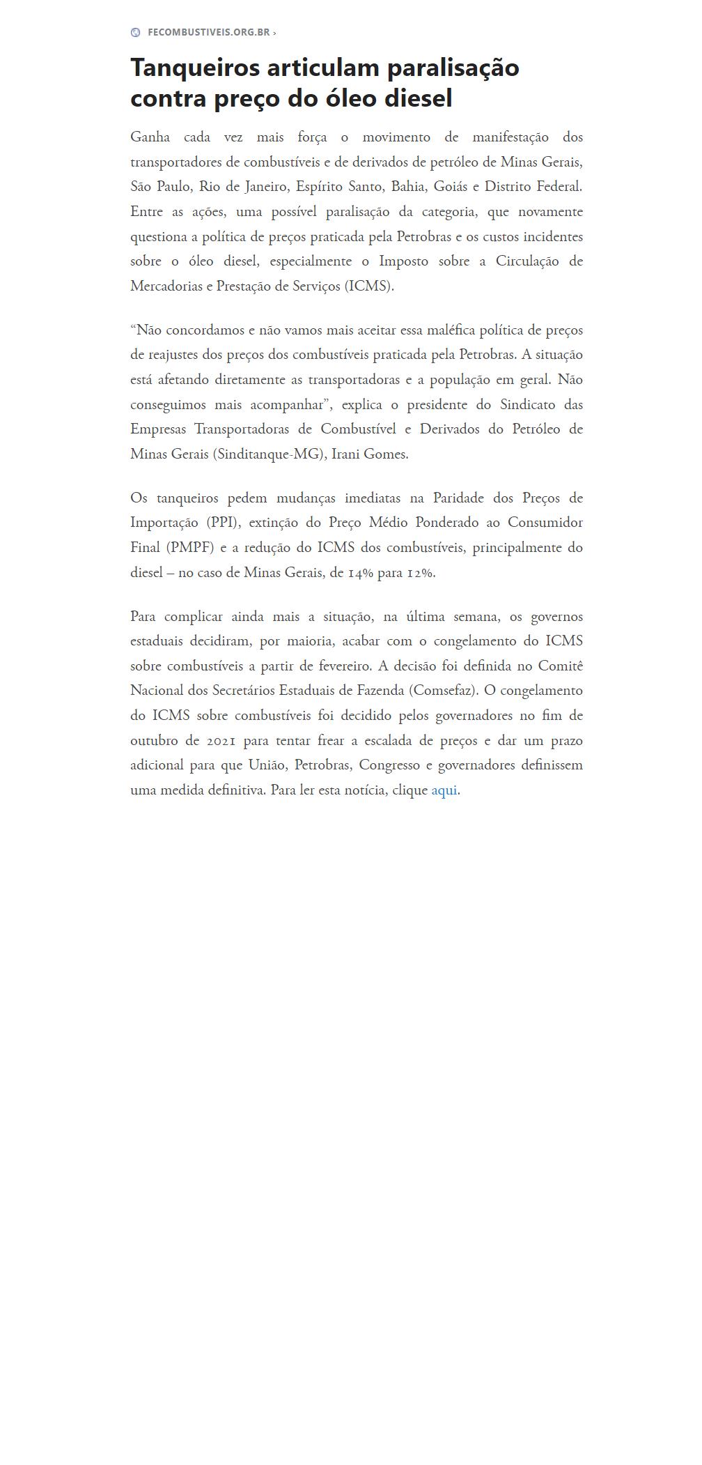 Tanqueiros articulam paralisação contra preço do óleo diesel