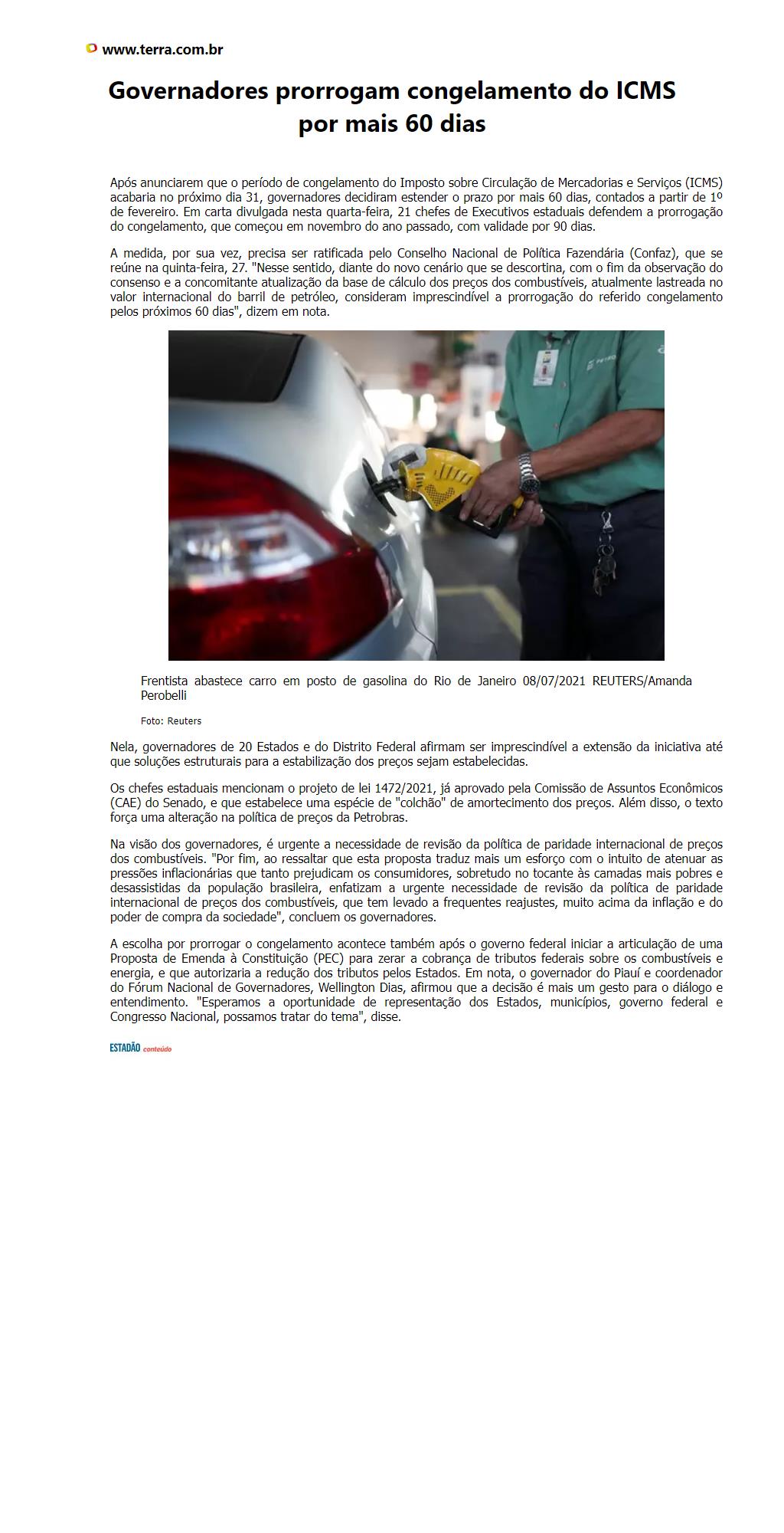 Governadores prorrogam congelamento do ICMS por mais 60 dias