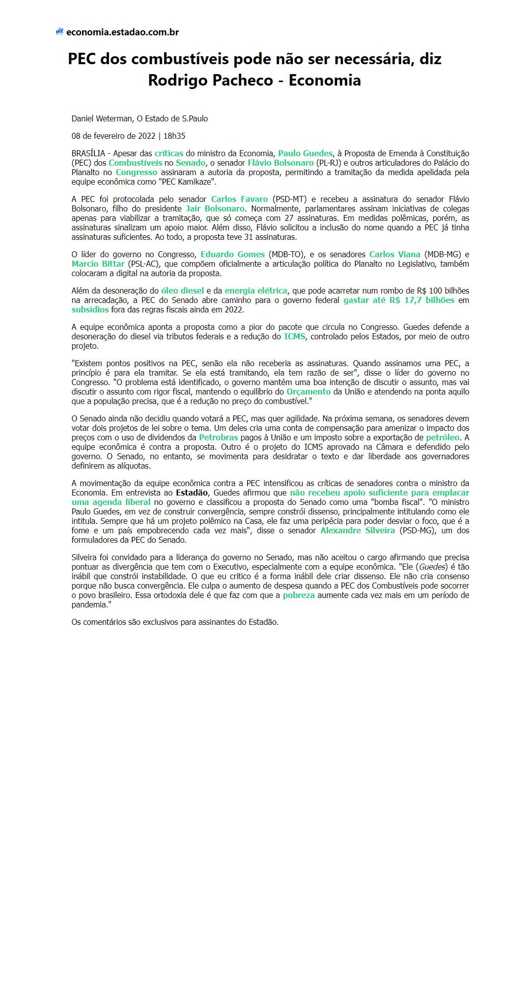 PEC dos combustíveis pode não ser necessária, diz Rodrigo Pacheco