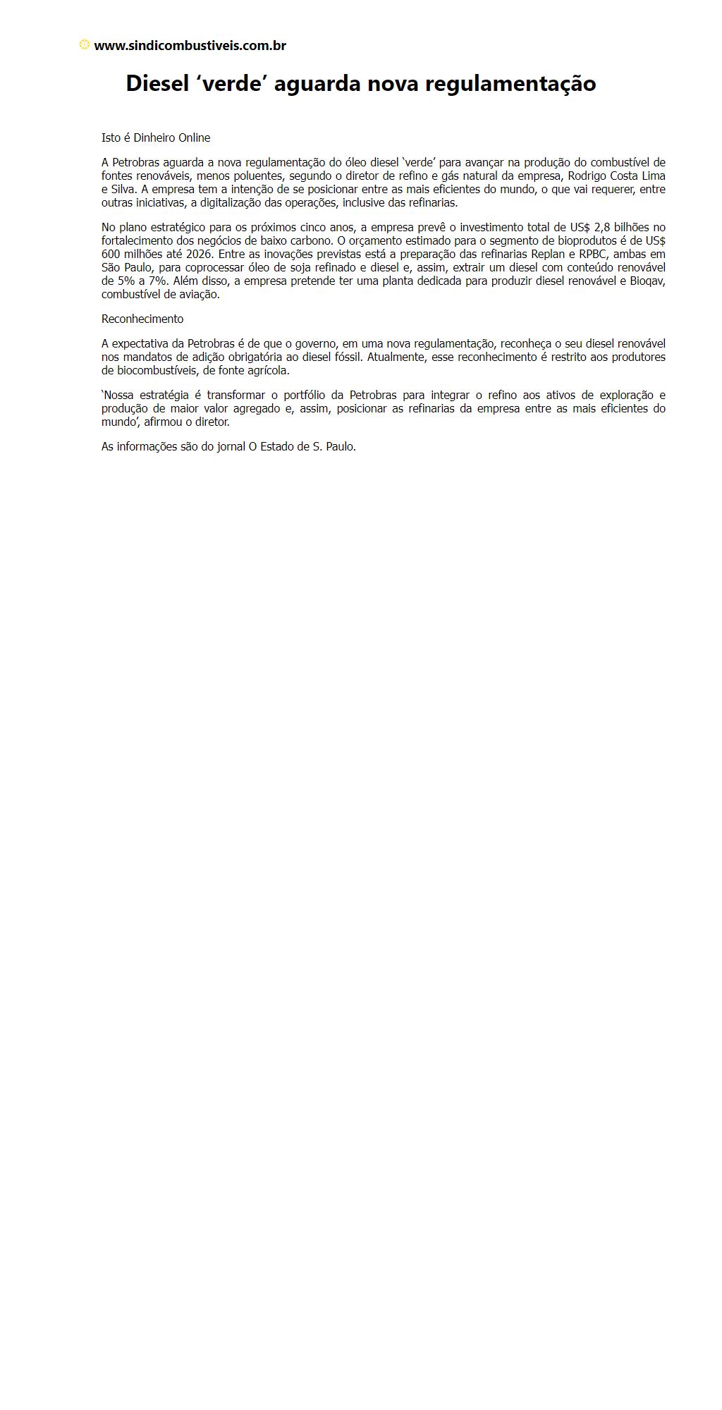 Diesel verde aguarda nova regulamentação