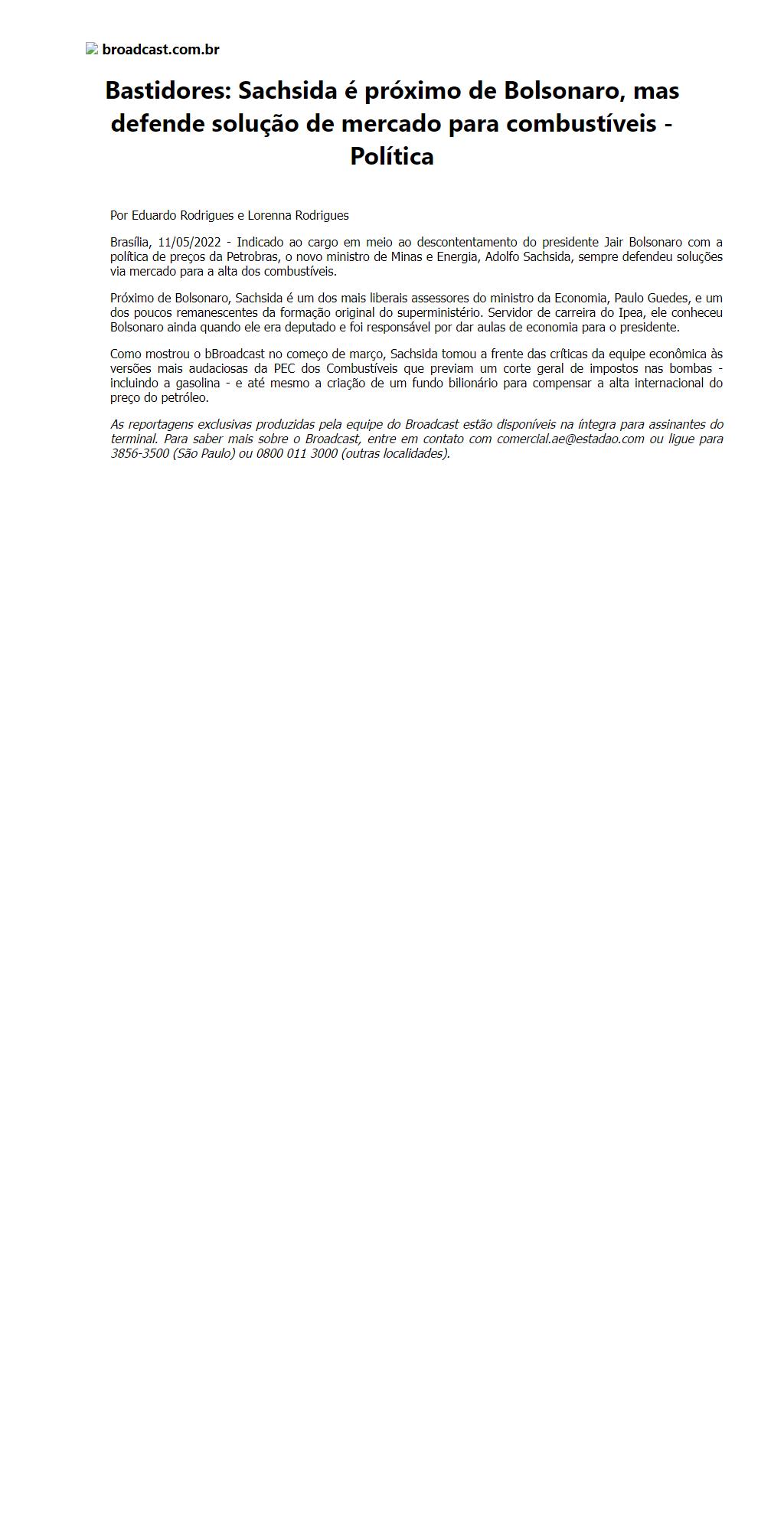 Bastidores: Sachsida é próximo de Bolsonaro, mas defende solução de mercado para combustíveis