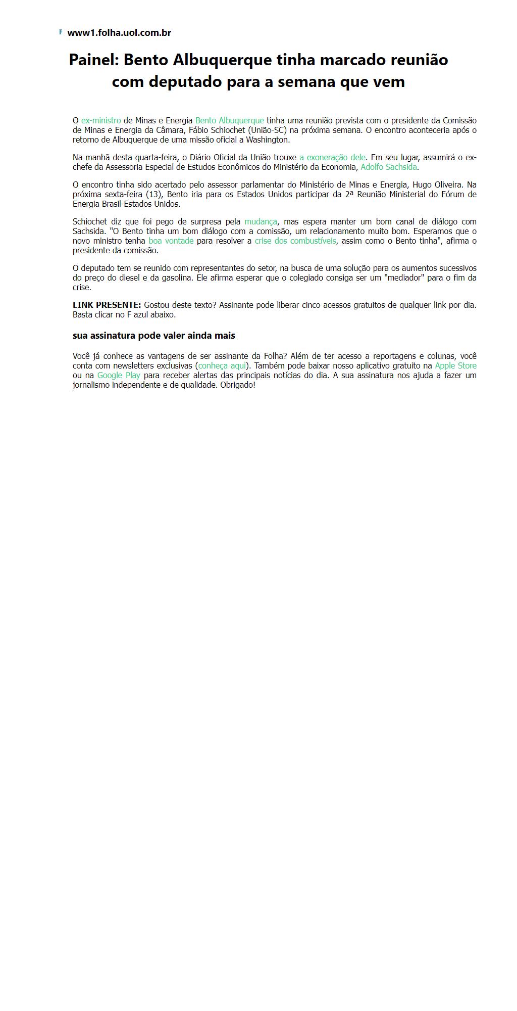 Bento Albuquerque tinha marcado reunião com deputado para a semana que vem