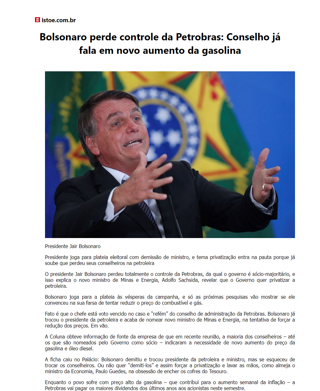 Bolsonaro perde controle da Petrobras: Conselho já fala em novo aumento da gasolina