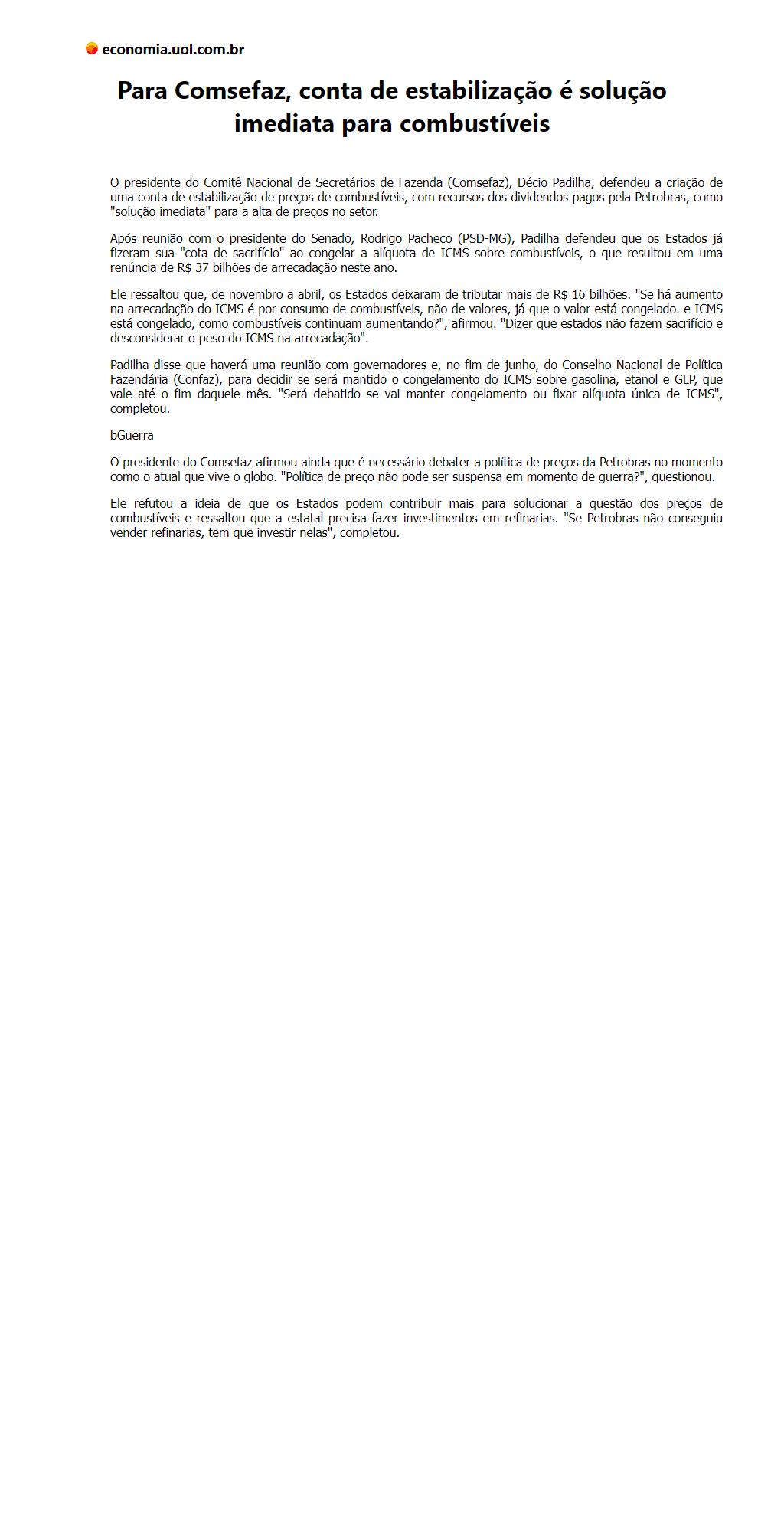 Para Comsefaz, conta de estabilização é solução imediata para combustíveis