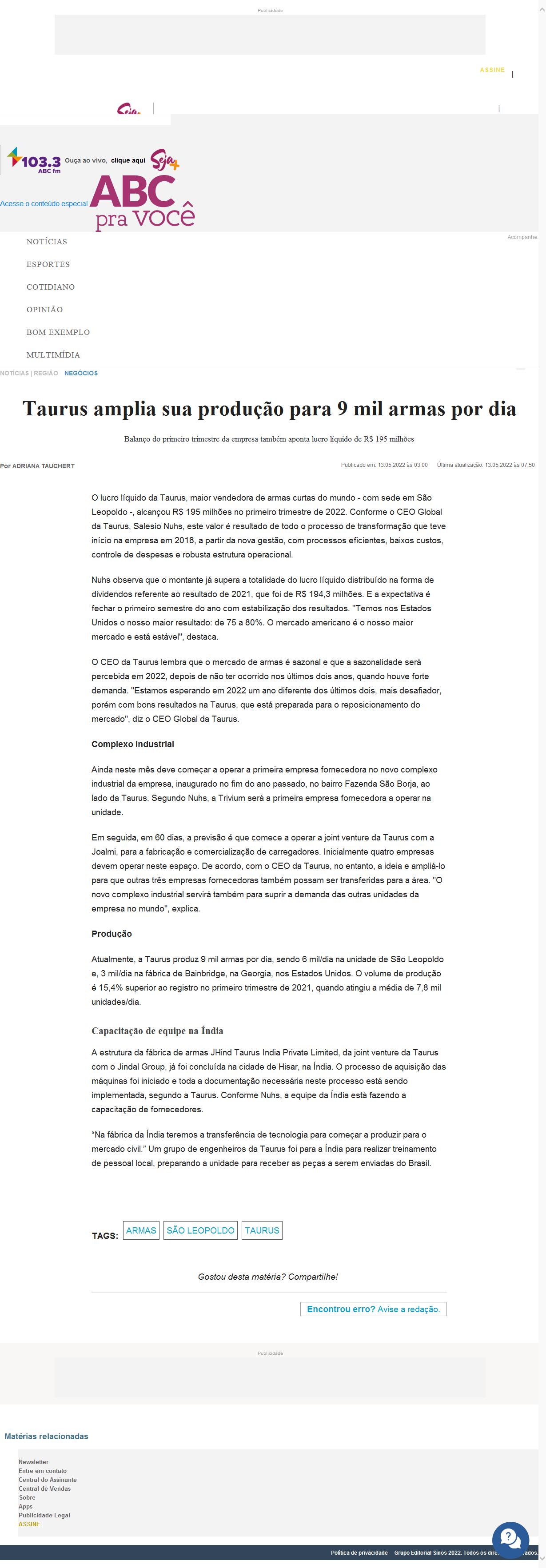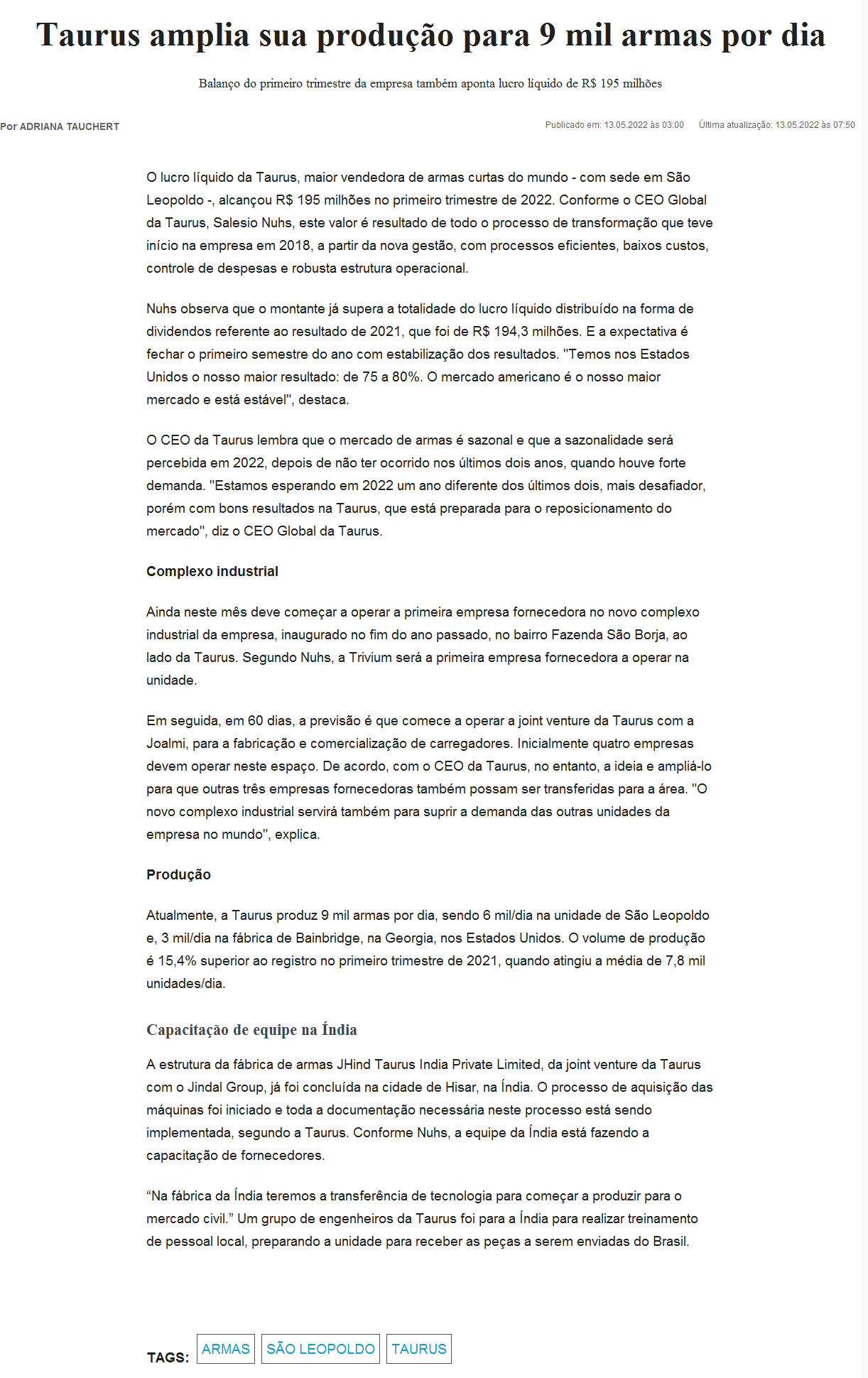 Taurus amplia sua produção para 9 mil armas por dia