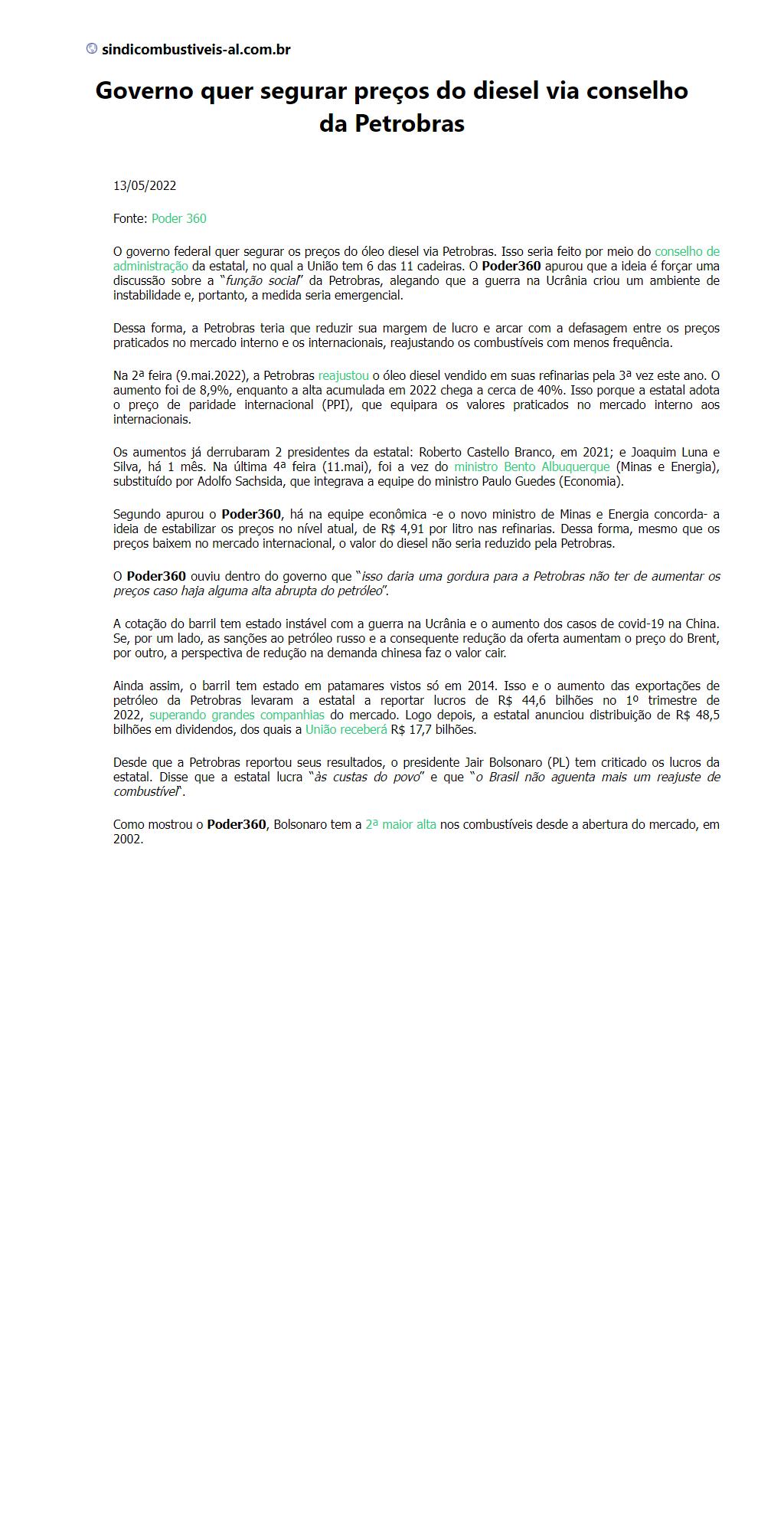 Governo quer segurar preços do diesel via conselho da Petrobras