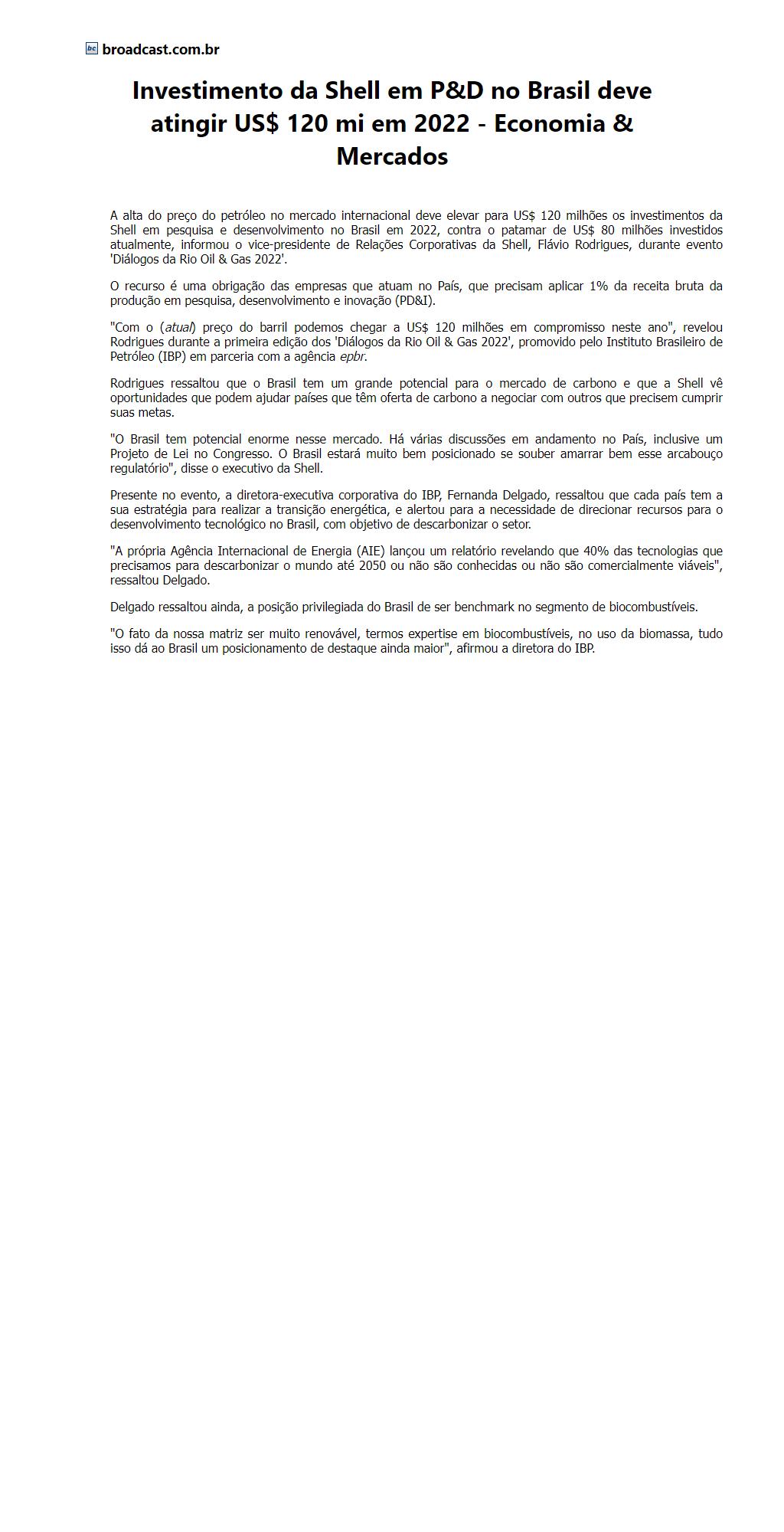 Investimento da Shell em PD no Brasil deve atingir US$ 120 mi em 2022