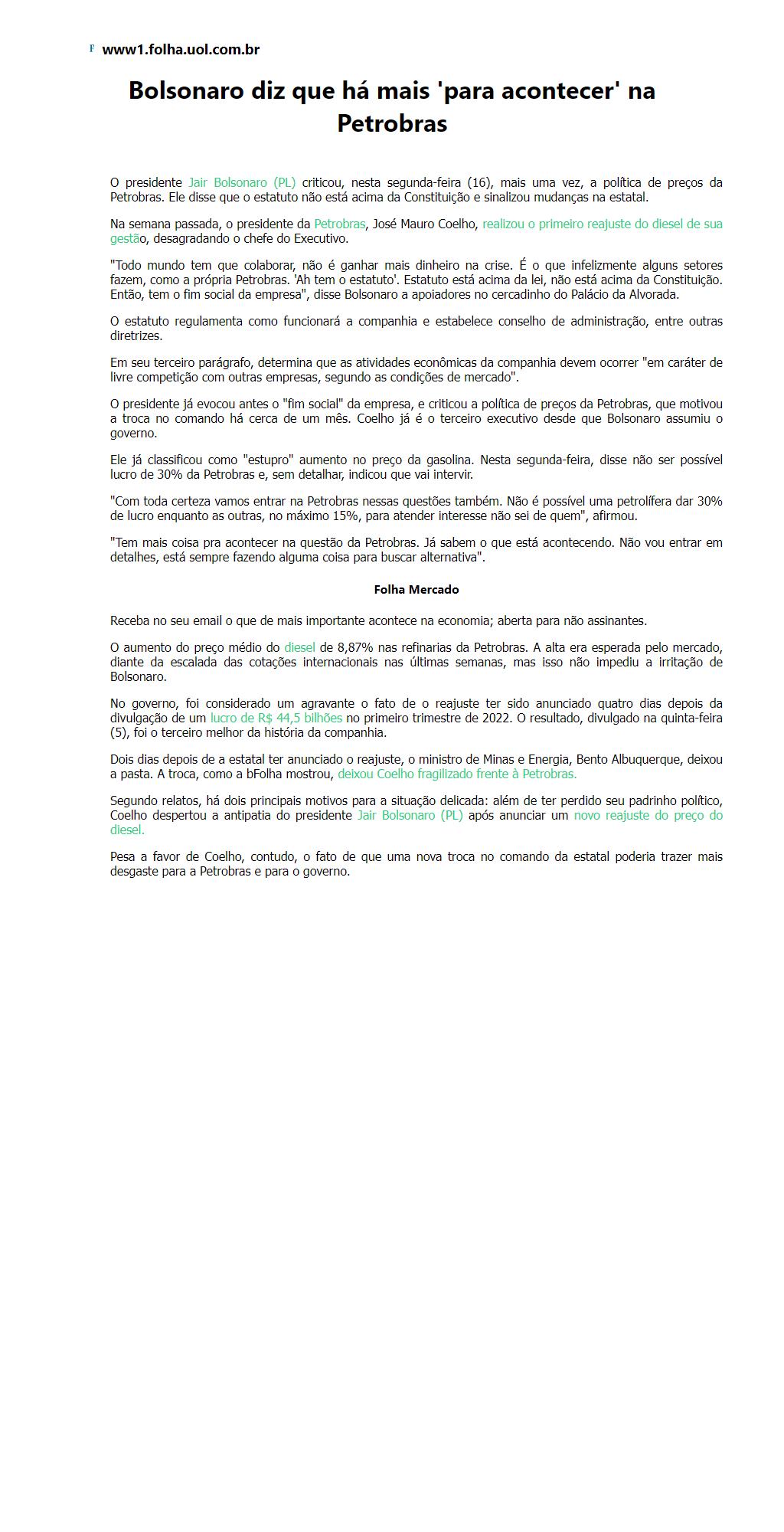 Bolsonaro diz que há mais 'para acontecer' na Petrobras