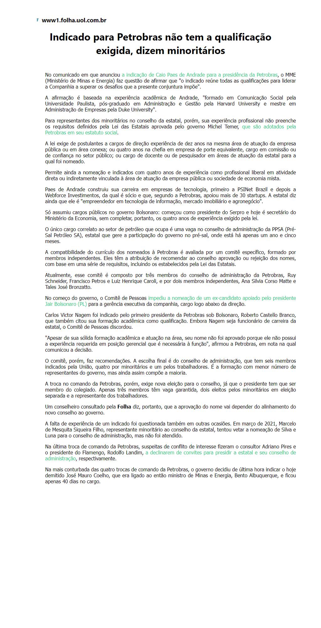 Indicado para Petrobras não tem a qualificação exigida, dizem minoritários