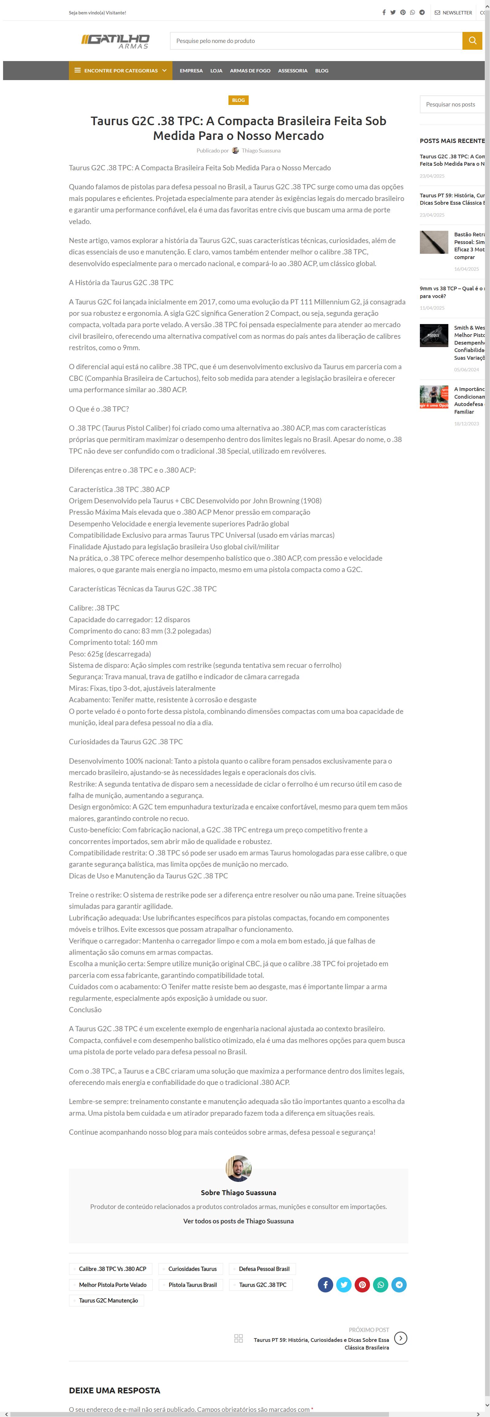 Taurus G2C .38 TPC: A Compacta Brasileira Feita Sob Medida Para o Nosso Mercado