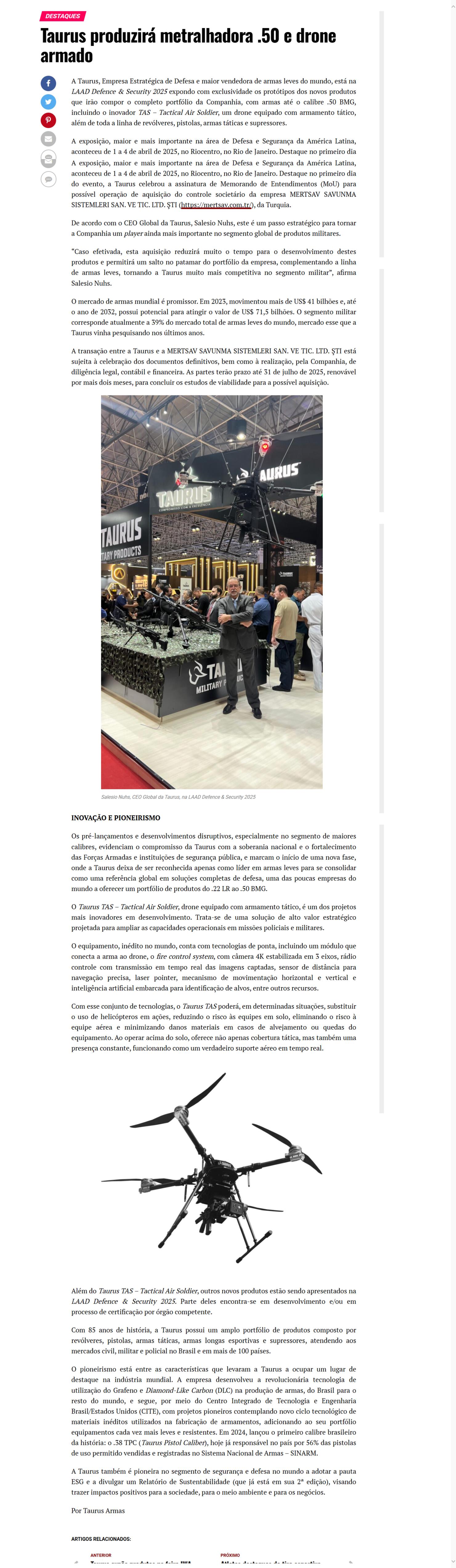 Taurus produzirá metralhadora .50 e drone armado - O portal de notícias que ajuda você a entender tudo sobre o tiro